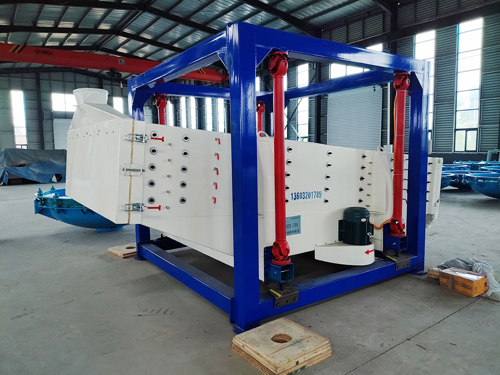 產(chǎn)品描述: 方形搖擺篩系列篩機是滿(mǎn)足大產(chǎn)量、高精度需求的用戶(hù)而研發(fā)設計的一種篩分設備。它廣泛用于化工、冶金、礦業(yè)、飼料業(yè)、食品等多個(gè)行業(yè)。尤其適用于重堿、食鹽、樹(shù)脂、復合肥、大小顆粒尿素、飼料、還原鐵粉、氧化鋯、陶粒、重晶石等 工作原理 1.方形搖擺篩是采用了進(jìn)口普通電機做傳動(dòng)源,并且引進(jìn)德國技術(shù),傳動(dòng)方式為仿人工式?! ?.運動(dòng)軌跡為向前向左右畫(huà)橢圓形軌跡,從而使物料貼近網(wǎng)面,在篩網(wǎng)上面也采用橢圓曲線(xiàn)運動(dòng),使物料在曬面上停留時(shí)間長(cháng)久,從而達到有效篩分?! ‘a(chǎn)品特點(diǎn) 全封閉的結構,粉塵不飛揚,采用偏重平衡,使篩機振動(dòng)小、噪音低。符合環(huán)境環(huán)保要求?! 〗M合圓周、橢圓、直線(xiàn)三種運動(dòng)方式,篩分效果好。適合多種物料篩分?! ∨鋫渥詣?dòng)張緊和自動(dòng)清潔的篩網(wǎng)安裝系統,使篩網(wǎng)利用率高、壽命長(cháng),換網(wǎng)結構簡(jiǎn)便快捷?! 〖訌娦蜋C座,保證設備運轉更平衡,亦可根據實(shí)際場(chǎng)地情況采用吊掛式結構滿(mǎn)足客戶(hù)改造需要?! 「倪M(jìn)鋼絲繩吊掛結構,避免鋼絲磨損?! 蓪雍Y框設計;也有三層篩框的機型供客戶(hù)選擇?! ∮糜诜蹱罨蝾w粒飼料的篩選和分級,也可用于飼料廠(chǎng)原料的初清,以及大、中型飼料廠(chǎng)二次粉碎后中間產(chǎn)品的分級 維修保養 1.搖擺篩在進(jìn)行開(kāi)機之前,需要檢查篩面上物料的振動(dòng)狀態(tài),并保證物料通道的暢通運行?! ?.為了確保搖擺篩工作狀態(tài)良好,應定期檢查篩選效率和設備運行狀態(tài)。經(jīng)常檢查喂料機構和清理篩面,使篩孔通暢率保持在80%以上;檢查清理橡皮球是否磨損,必要時(shí)進(jìn)行更換,以保持篩面具有足夠的自清能力?! ?.正確調節搖擺篩的喂料裝置,使物料層按篩面寬度均勻穩定地進(jìn)入工作篩面;避免物料集中于篩面局部位置,影響篩理效果?! ?.如果搖擺篩帶有除塵裝置,開(kāi)機順序為先開(kāi)相關(guān)風(fēng)機,然后啟動(dòng)振動(dòng)機構,待設備運行平穩后再開(kāi)始進(jìn)料正常工作?! ?.搖擺篩在使用中,它的主要磨損部件就是篩網(wǎng),因此篩網(wǎng)的檢查是非常重要的,并在日常的檢修中,對篩網(wǎng)進(jìn)行及時(shí)的更換維維修