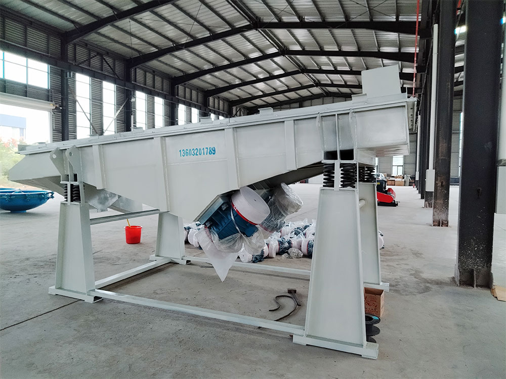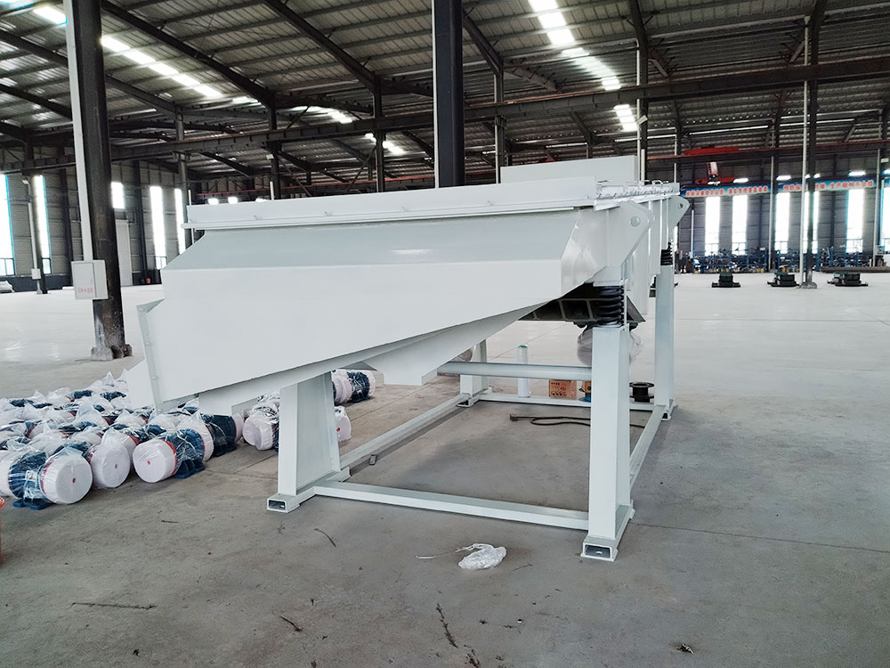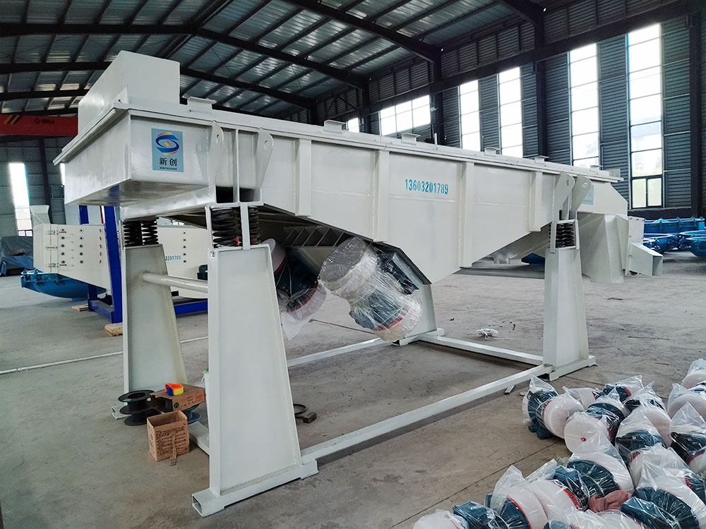 產(chǎn)品描述: 用于煤炭、水電、礦山、建材、化工、塑料、磨料、醫藥、糧食、炭素、化肥等行的設備 直線(xiàn)篩(直線(xiàn)振動(dòng)篩)利用振動(dòng)電機激振作為振動(dòng)源,使物料在篩網(wǎng)上被拋起,同時(shí)向前作直線(xiàn)運動(dòng),物料從給料機均勻地進(jìn)入篩分機的進(jìn)料口,通過(guò)多層篩網(wǎng)產(chǎn)生數種規格的篩上物、篩下物、分別從各自的出口排出。具有耗能低、產(chǎn)量高、結構簡(jiǎn)單、易維修、全封閉結構,無(wú)粉塵溢散,自動(dòng)排料,更適合于流水線(xiàn)作業(yè)?! 」ぷ髟怼 SG系列振動(dòng)篩工作時(shí),兩電機同步反向旋轉使激振器產(chǎn)生反向激振力,迫使篩體帶動(dòng)篩網(wǎng)做縱向運動(dòng),使其上的物料受激振力而周期性向前拋出一個(gè)射程,從而完成物料篩分作業(yè). 直線(xiàn)振動(dòng)篩是雙振動(dòng)電機驅動(dòng)。當兩臺振動(dòng)電機做同步、反缶旋轉時(shí),其偏心塊所產(chǎn)生的激振力在平行于電機軸線(xiàn)的方向相互抵消,在垂直于電機軸的方向疊為一合力,因此篩機的運動(dòng)軌跡為一直線(xiàn)。兩電機軸相對篩面有一傾角,在激振力和物料自重力的合力作用下,物料在篩面上被拋起跳躍式向前作直線(xiàn)運動(dòng),從而達到對物料進(jìn)行篩選和分級的目的。適用于粒度在0.074-5mm、含水量小于70%、無(wú)粘性的各種干式粉狀物料的篩分。給料粒度不大于10mm?! ZSF直線(xiàn)振動(dòng)篩主要特點(diǎn)及適于行業(yè): 篩分精度高、處理量大、結構簡(jiǎn)單、耗能少、噪音低、篩網(wǎng)使用壽命長(cháng)、密封性好、極少粉塵溢散、維修方便、可用于流水線(xiàn)生產(chǎn)中的自動(dòng)化作業(yè)?! V泛應用于化工、食品、塑料、醫藥、冶金、玻璃、建材、糧食、化肥、磨料、陶瓷等行業(yè)中干式粉狀或顆粒狀物料的篩分?! 』咎攸c(diǎn) 穩定可靠、消耗少、噪音低、壽命長(cháng)、振型穩、篩分效率高等?! ZSF直線(xiàn)振動(dòng)篩主要特點(diǎn): 1、密封性好、極少粉塵溢散?! ?、耗能少、噪音低、篩網(wǎng)使用壽命長(cháng)?! ?、篩分精度高、處理量大、結構簡(jiǎn)單?! ?、全封閉結構、自動(dòng)排料、更適合于流水線(xiàn)作業(yè)?! ?、篩體各部分均采用扎制鋼板及型材焊接而成(部分組體間為螺栓連接)整體剛度好,牢固可靠。